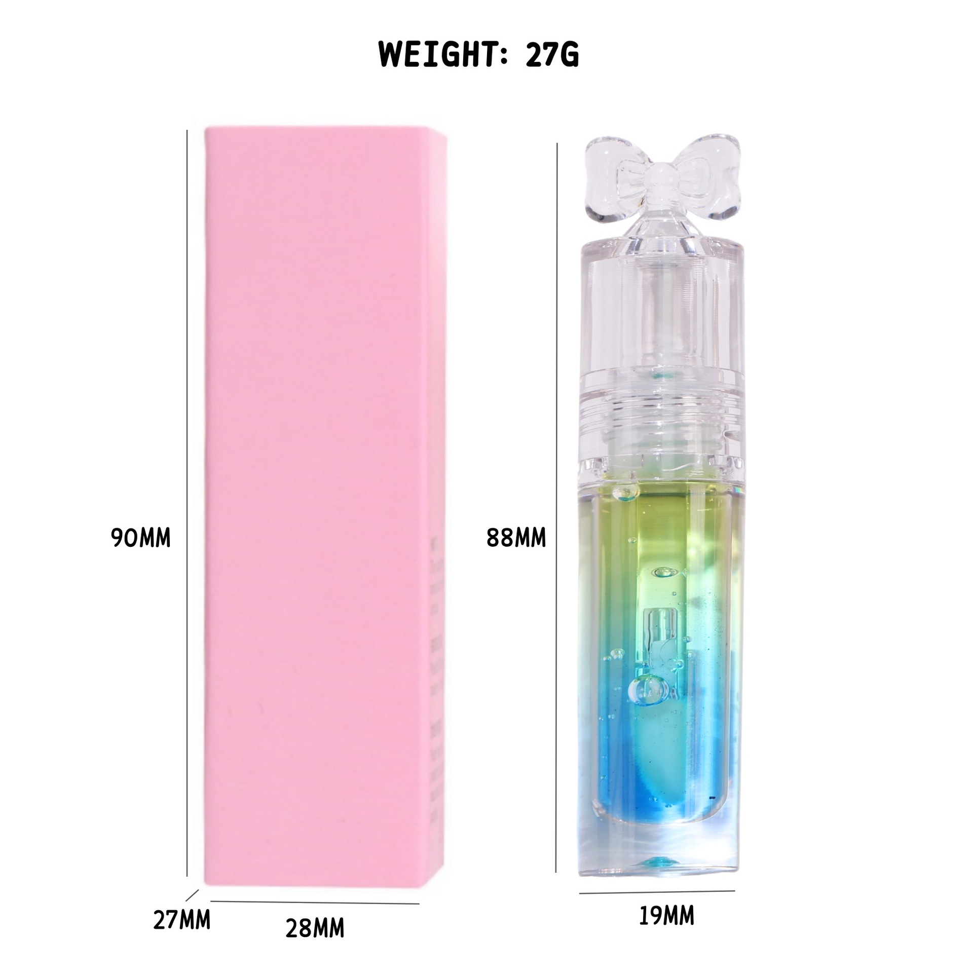 Clear oil transforms into a soft pink or rosy tint after application, based on your lip pH and temperature.